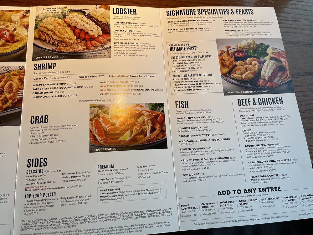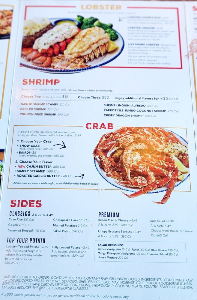 Red Lobster - Admiral Callaghan Ln Menu